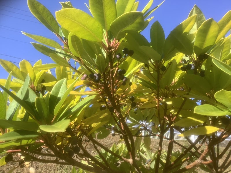 ゆずりはの実も熟して黒くなりました。ゆずりはの木は 雄雌あります。実は毒性です。