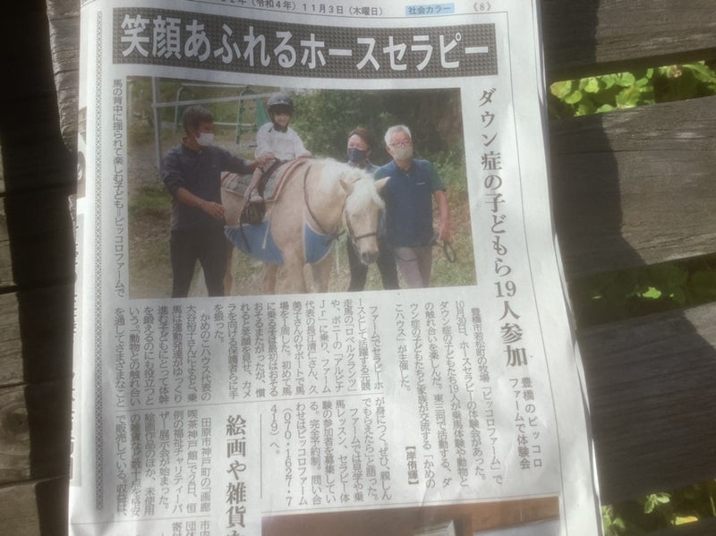 東愛知新聞 11月3日〜笑顔あふれるホースセラピー〜ダウン症の子どもら19人参加