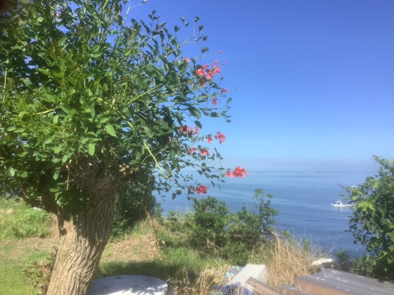 デイゴの花が🌸赤く咲き 三河湾には漁をする舟が 静かな海に数隻 イカリを下ろして⚓️います