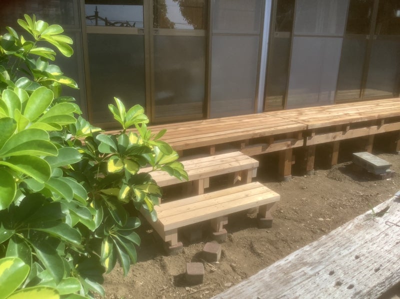 濡れ縁側を 木製で作りました。廊下の延長です。民家から三河湾を眺められます。