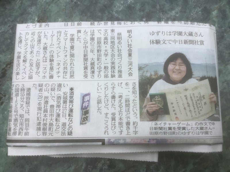 11月28日 中日新聞 朝刊に 明るい社会づくり 中日新聞社賞 受賞が掲載されました