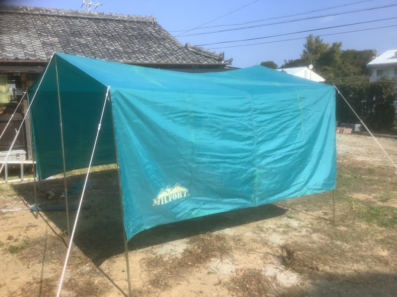 シート式のテントを いただいたました 登人路(ととろ)の民家で練習して 森のテント⛺️に活用予定です