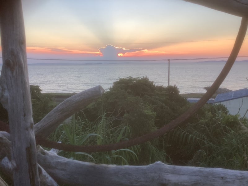 さつまいも🍠など グッタリしてます。 ゆずりはの森の夕日が輝いてます。