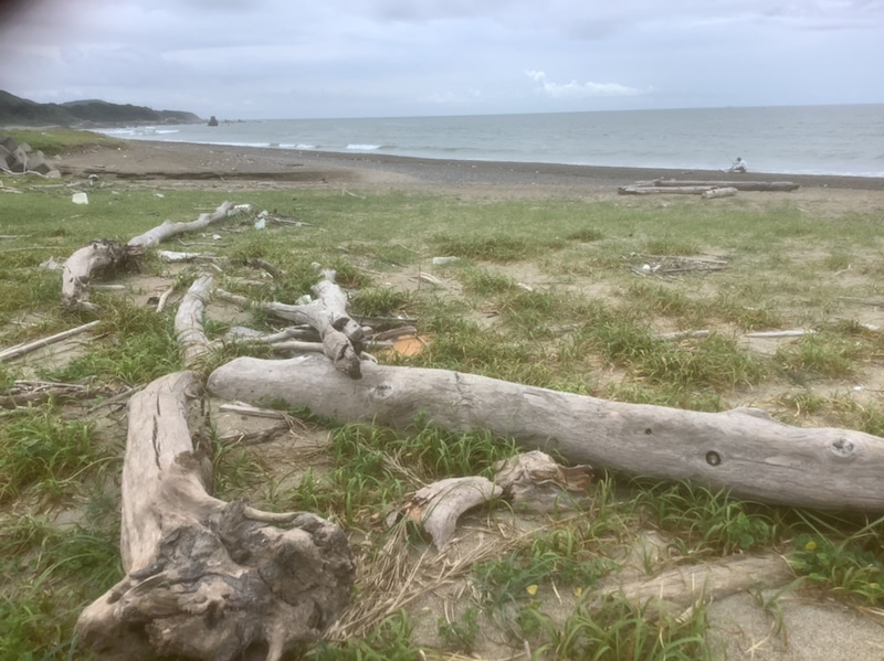 太平洋の浜で