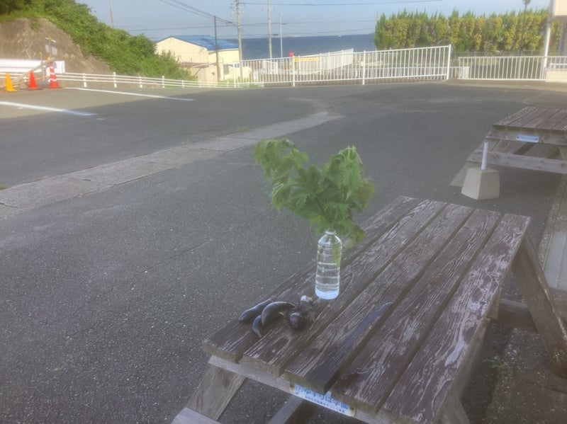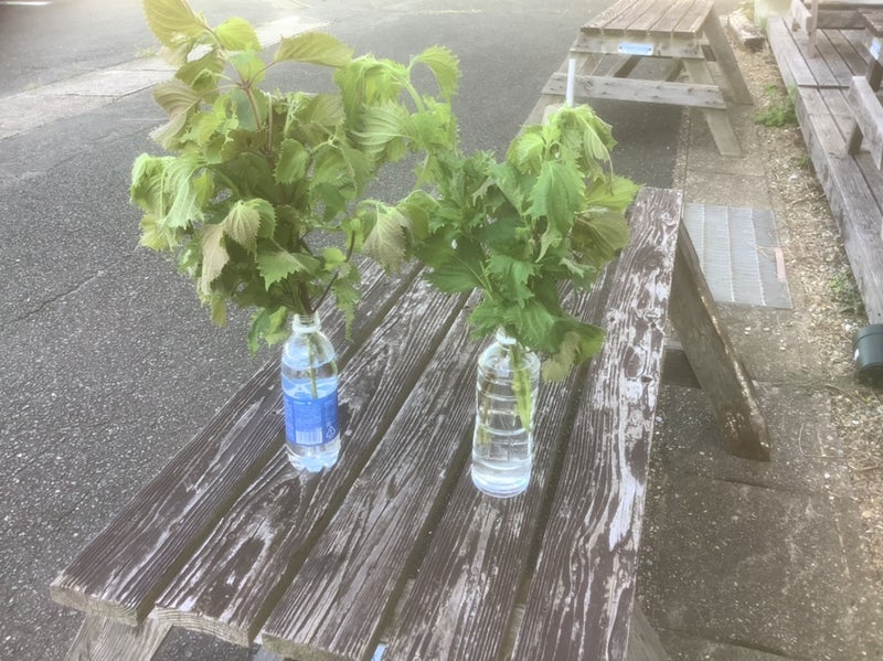 朝7時に ゆずりは農園でナス 青しそを取って来ました