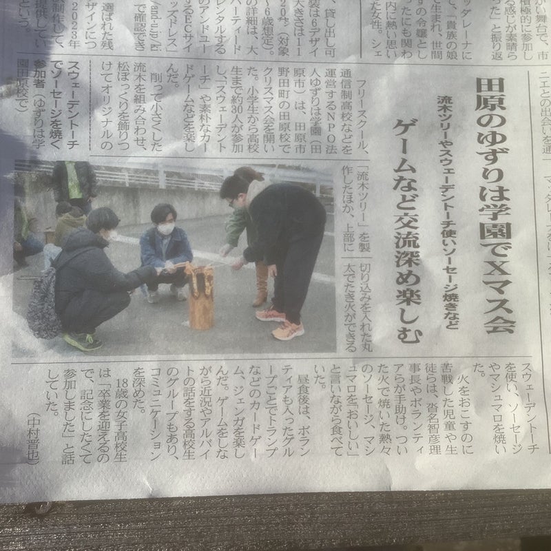 12月25日(日) 東日新聞に ゆずりは学園Xマス会が 掲載されました