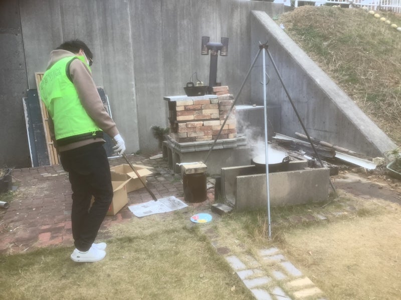 きれいに 焼けました 美味しかったです 昼は豚汁 混ぜご飯をみんなでデッキで食べました