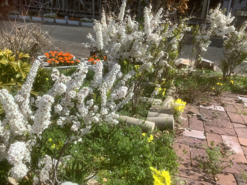 春になり 渥美半島は 花 🌸花🌼 花💐です。私(パパさん)が植えた アケビの紫の花 福島県からいただいた 切り花のレンギョウをさしたら 大きく育ちました。友人が育て卯の花の鉢植えを ドームの横に植えたところ 白いきれいなはが 咲きました。