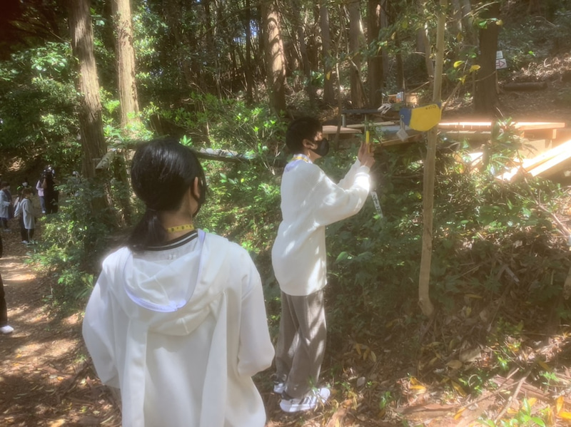 森の宝物は 森の木の名前 鳥の名前にQRコードを読み取ります。木の実や🍂この葉も集めるミッションがあります。