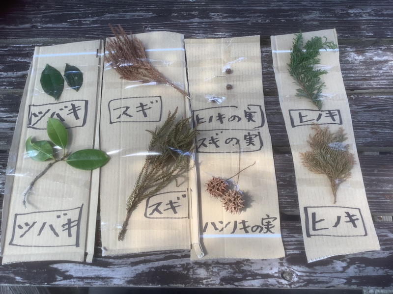 鳥🦆や木のQRコードを スマホで読み取り 森の宝物〜ツバキの葉 スギの葉や実 ヒノキの葉や実 ハンノキの実〜を集めて来ます。