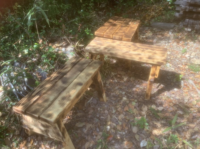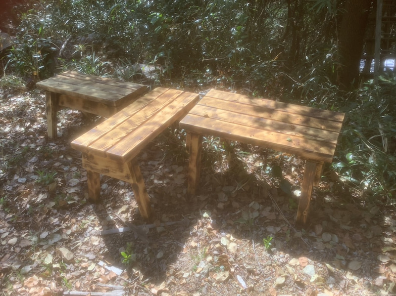 ネーチャーゲームの 森の宝物 見本を作りました。休憩所のベンチも追加しました。