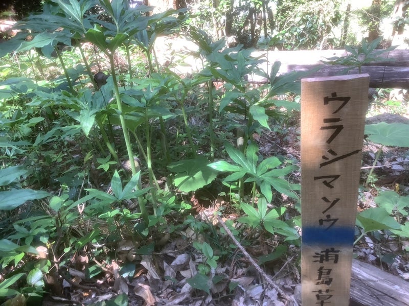 森の木陰に 浦島草が咲いています 浦島太郎の釣り糸が 花の先端部から伸びています。