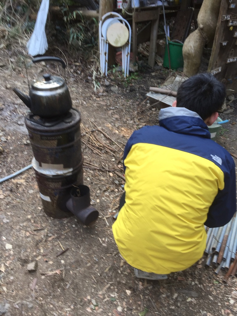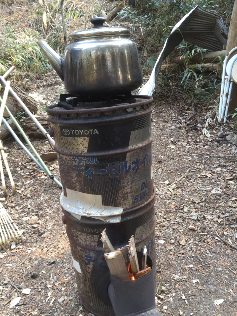 里山資本主義という本の中にロケットストーブがある。お湯を沸かす 料理を作る カマドではピザを焼く。小川の流れを利用して水を確保する。