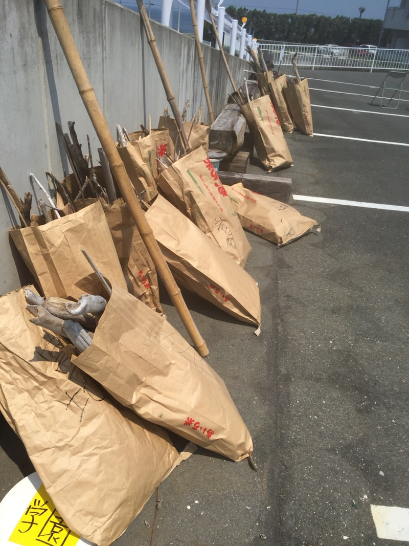 今月に行う飯ごう炊飯の薪を海に集めに行きました、。グループのメンバー1人ずつ米袋の中に流木を拾いました。海のごみ集めをしてきれいな海岸にもします。